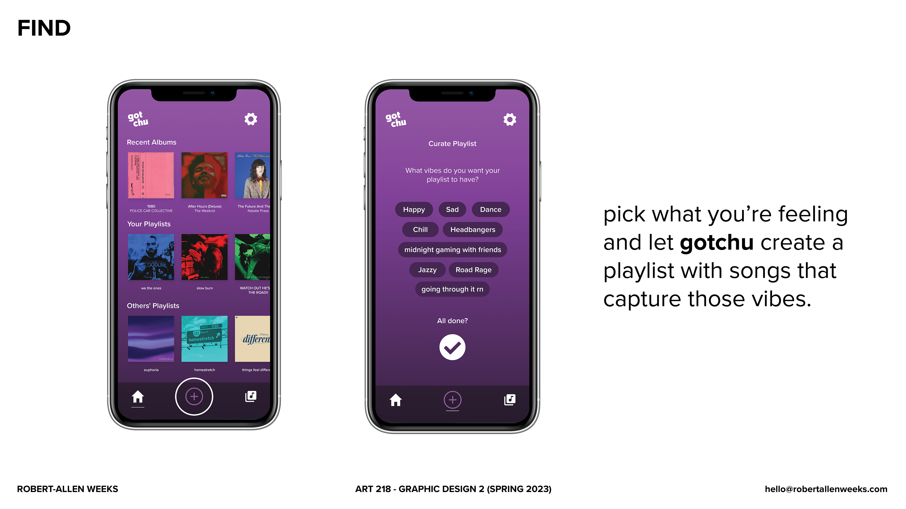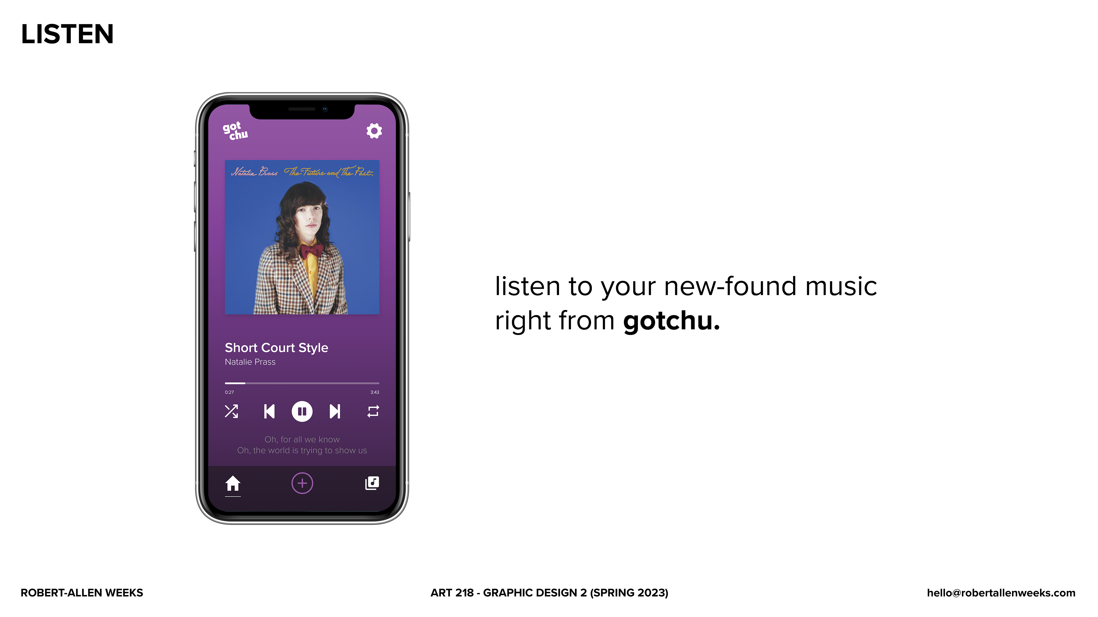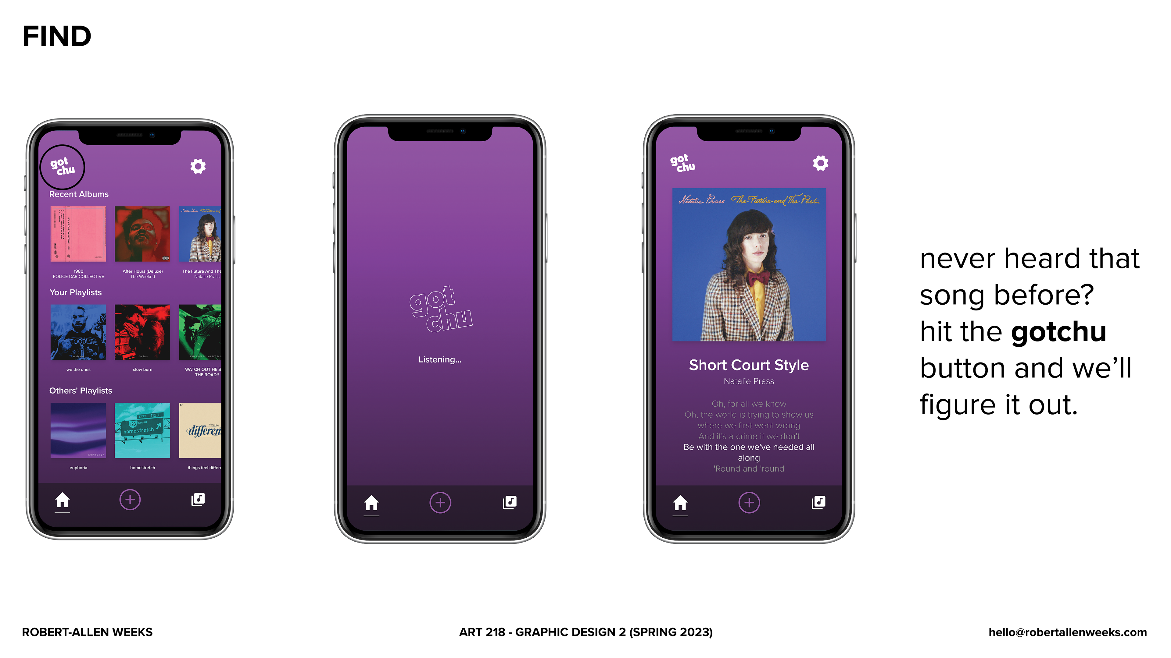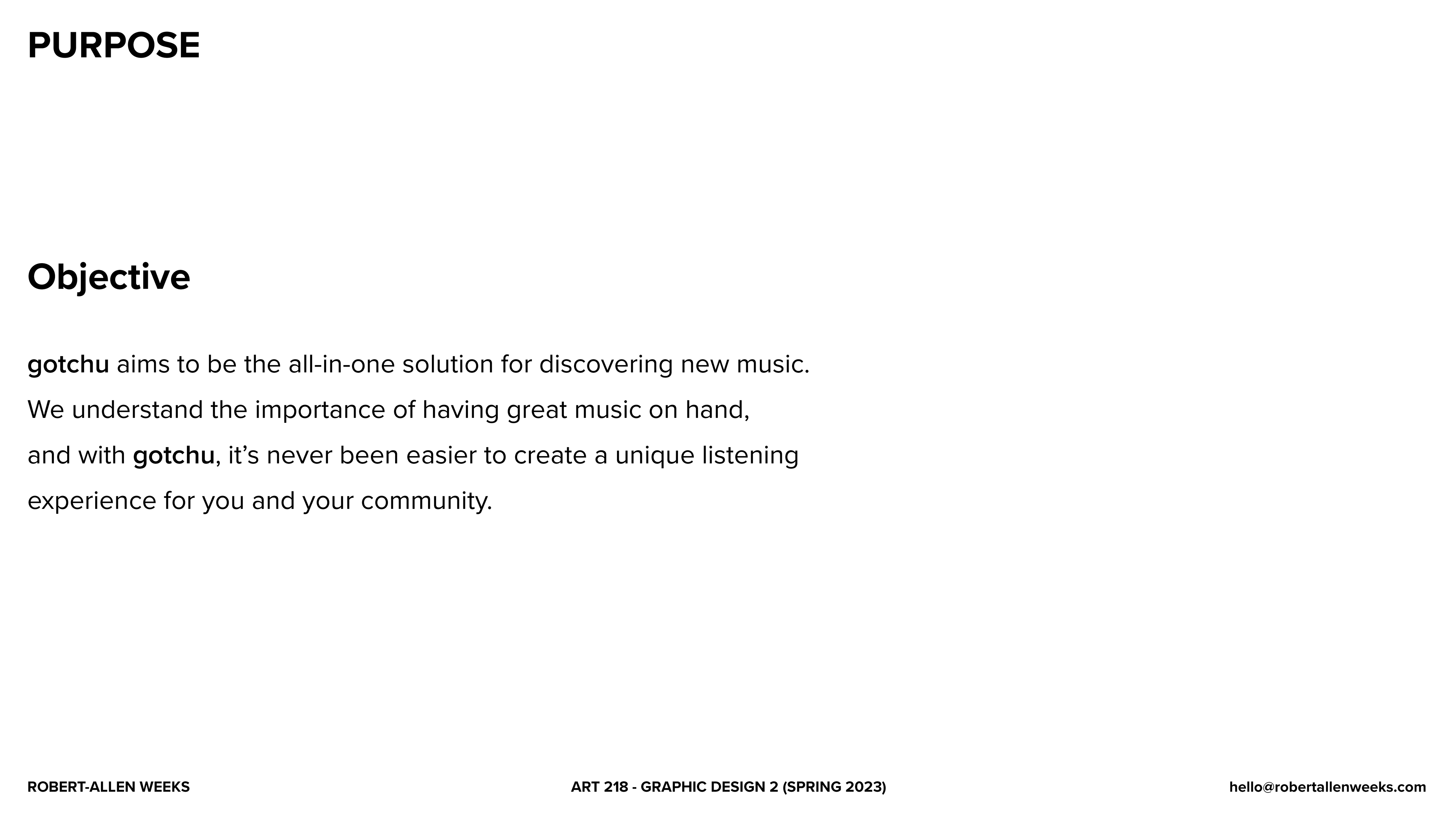 Below is the deck I created for the final presentation of gotchu, a music app that makes it easy to find, share, and listen to new music.