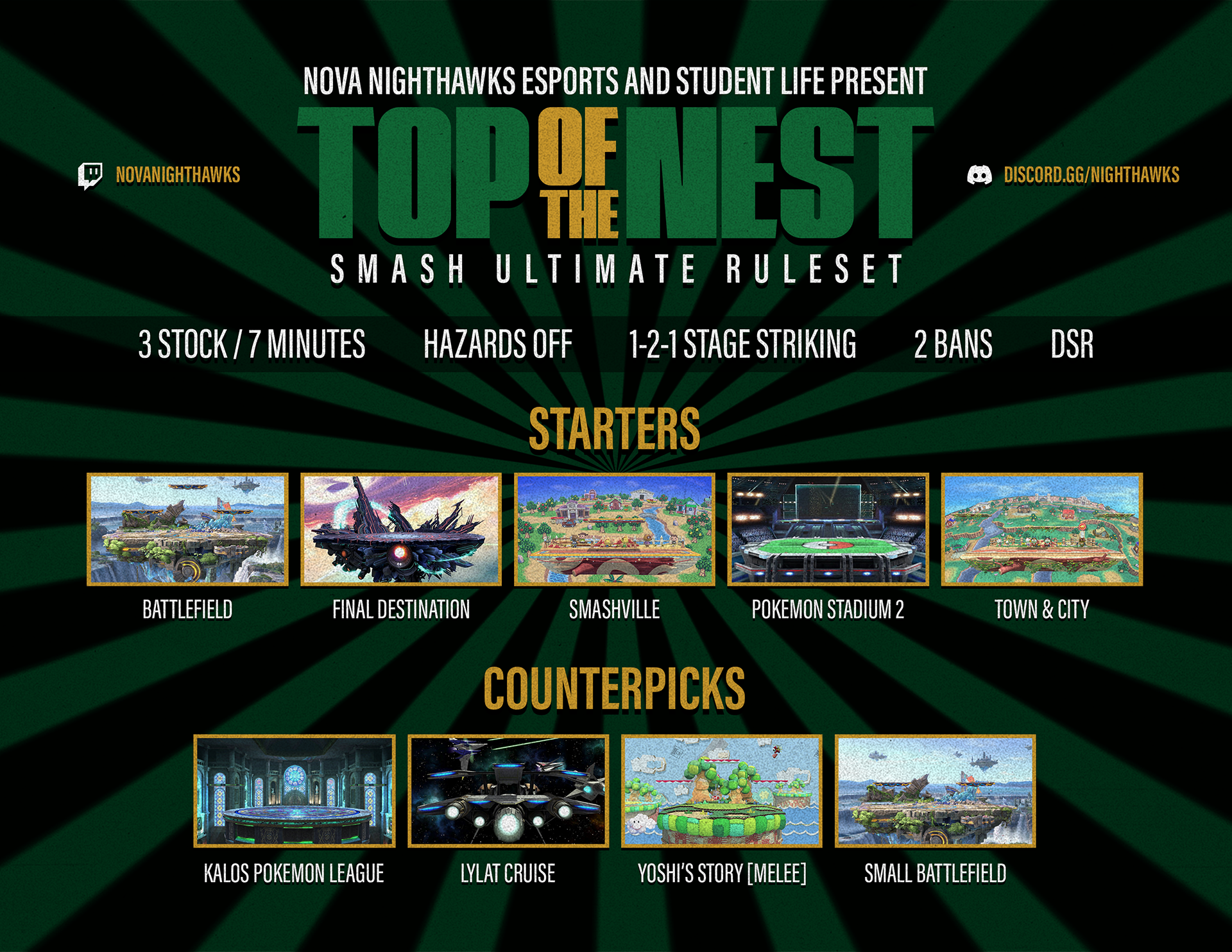 Top of the Nest was a Super Smash Bros. Ultimate tournament series hosted by the esports program at Northern Virginia Community College.